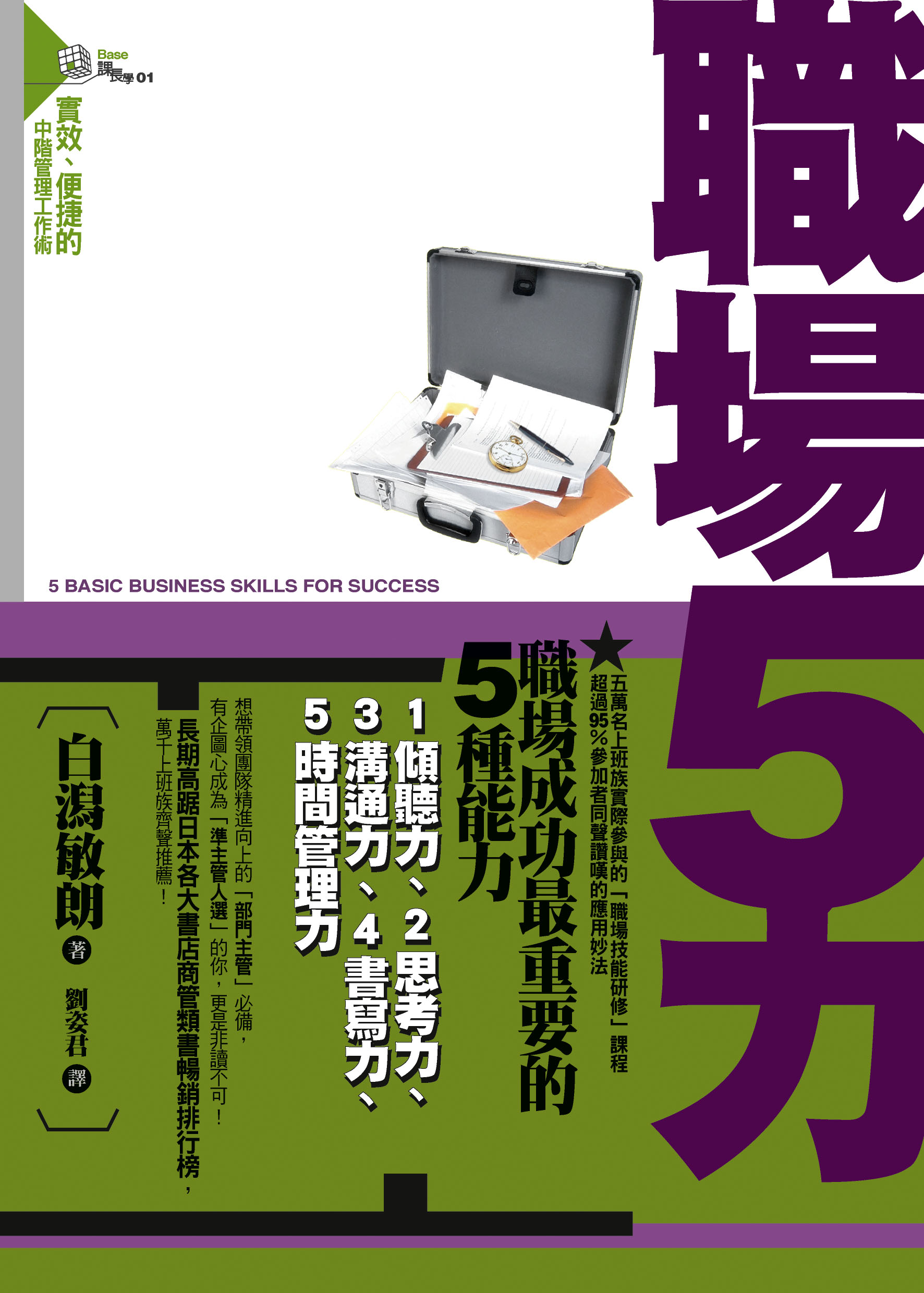 《職場5力》是由作者親自授課、為期兩年的一系列「職場技能研修」課程中精選而出的超實用工作術。針對一般上班族,尤其是中階主管設計,從「概念」到「具體方案」,詳列容易執行的簡明步驟、情境示意圖示,並輔以無敵好用的各式圖表……,生動好記,切中要點。由兩萬名上班族親身實驗、同聲推薦,絕對便捷、實效。
