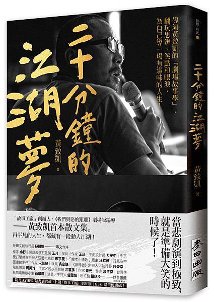 自童年「二十分鐘的江湖夢」開始布局,拉長到舞台上的浮想聯翩,黃致凱不斷說故事,說自己的、說他人的、說生而為人的種種擁有和失去。奇妙的是,「我」與「找」只差一撇距離,這本由青春時光、戲劇生涯及其生命哲思提煉的紙上劇場,便是一段「我找我」的奇幻旅程;讓人感受到生活和戲劇本為一體兩面,透過串串奇想連結,卸除僵化執念、重新尋找對這世界的新定義;每個人的舞台,都會是獨一無二的爛漫江湖。